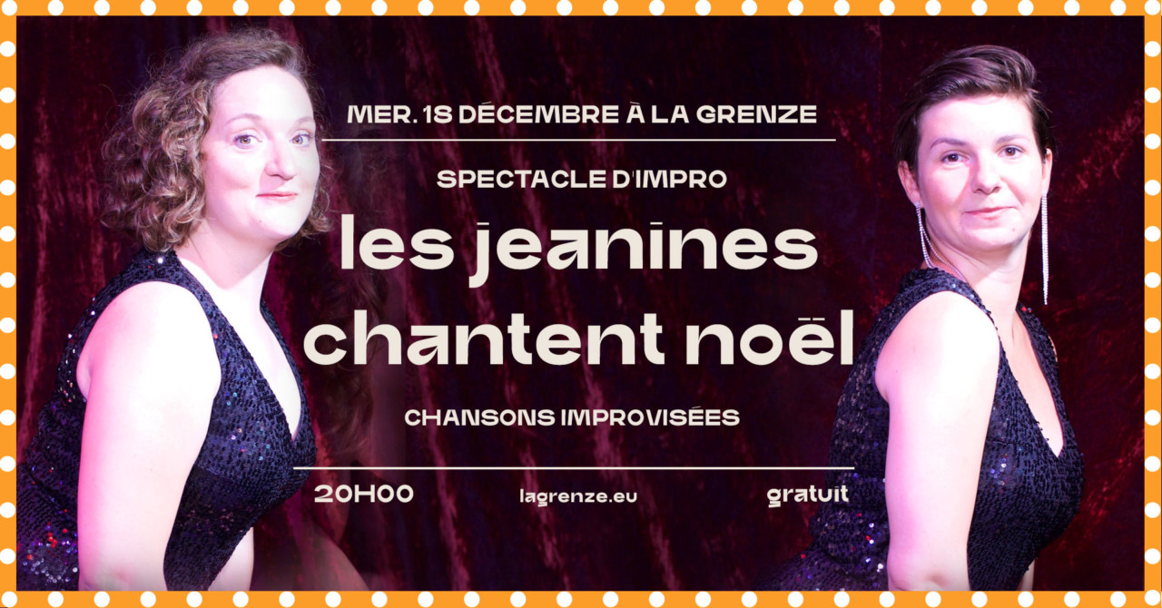 Accompagnées de leur musicien Nino, multi-instrumentiste au sourire de rêve, elles se lancent dans le vide sous vos yeux malicieux… Pour ce spectacle à La Grenze, elles vont feront rêver avec des chansons de Noël entièrement improvisées pour pailleter vos yeux de décorations multicolores.